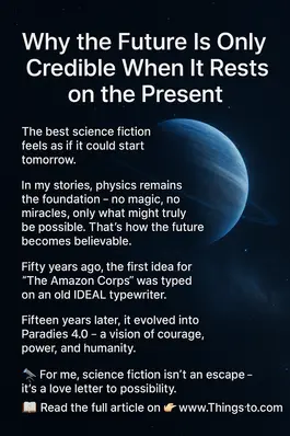 Dear visitors and friends of science fiction, I’m currently working intensively on several major projects that are very close to my heart. In total, there are six books in development – including new novels that are directly connected to my science fiction saga “Paradise 4.0.” These projects require a great deal of time, research, and creative focus, which means that some sections of this website will not be updated as regularly as before. New content will appear less frequently, but with much more depth, visuals, and background material. On my to-do list, you’ll also find several other projects that expand this universe: